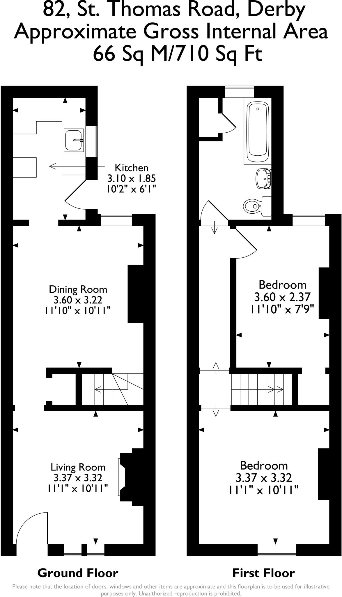 Ground Floor - Reception Room through to Dining Room and Kitchen, First Floor - Two Bedrooms, Bathroom, Rear Garden, GIA approximately 66 sq m (710 sq ft), Peartree Rail Station is approximately 0.5 miles to the south west, Shops and amenities located along Normanton Road to the north, Virtual To...