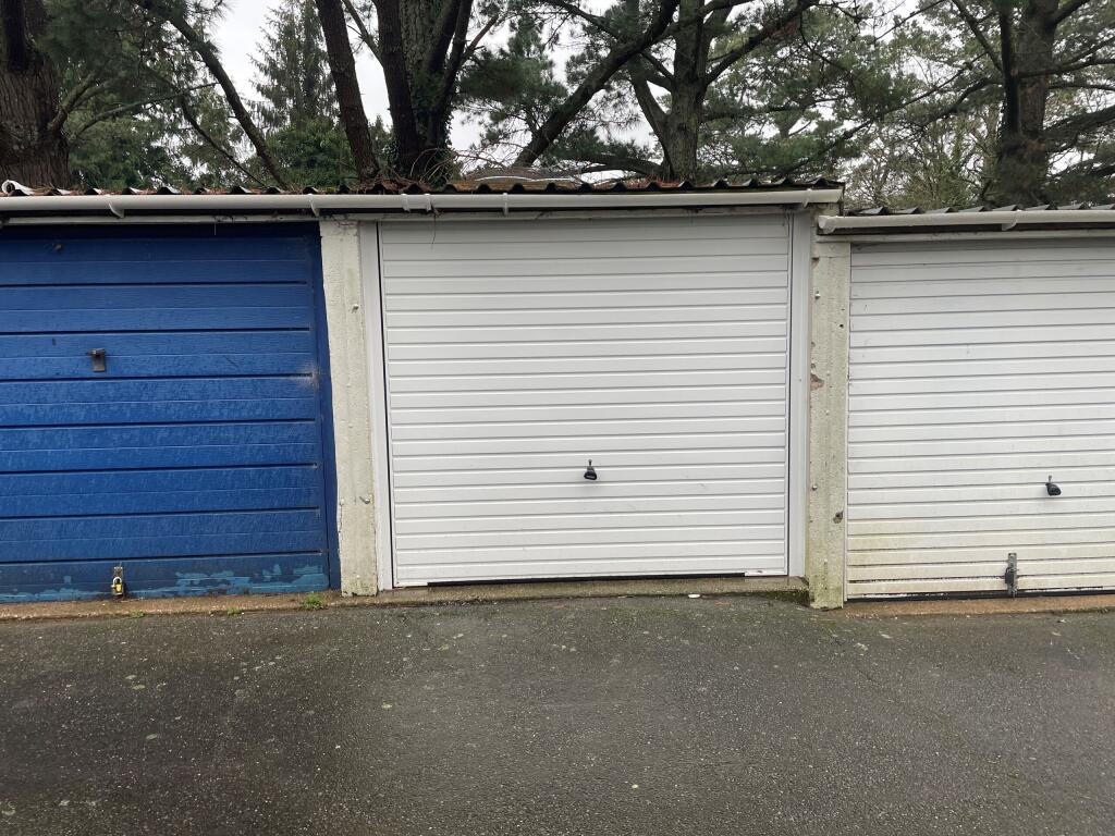 A mid terrace single garage of prefabricated concrete panel construction located on the edge of Totnes.