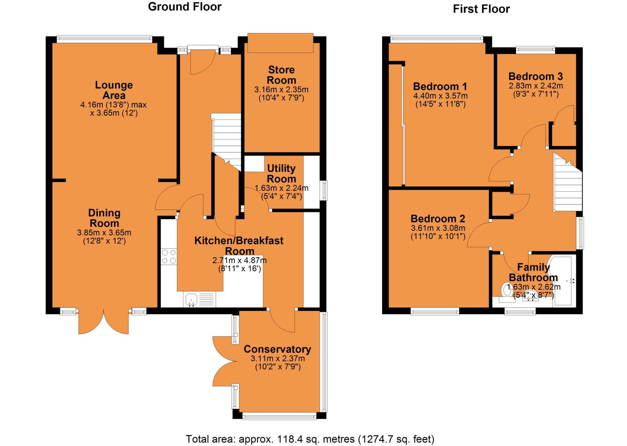 A three bedroom detached home with a stunning kitchen/breakfast room fitted with shaker style units, a beautiful quartz worktop, high end integrated appliances and an instant hot water tap. Spacious lounge/dining room with French doors that open into a Southerly facing garden. Utility & conservatory