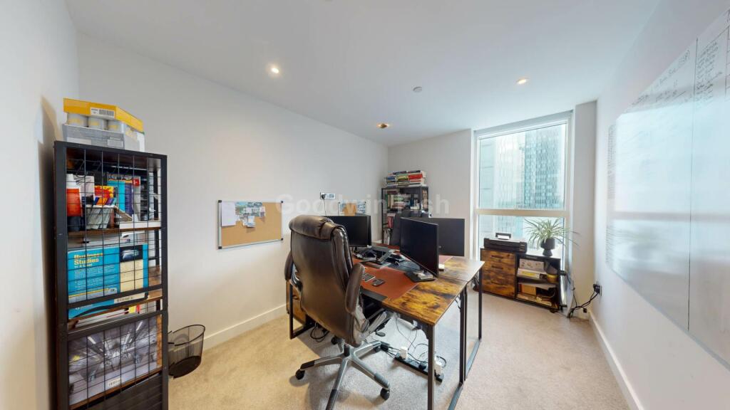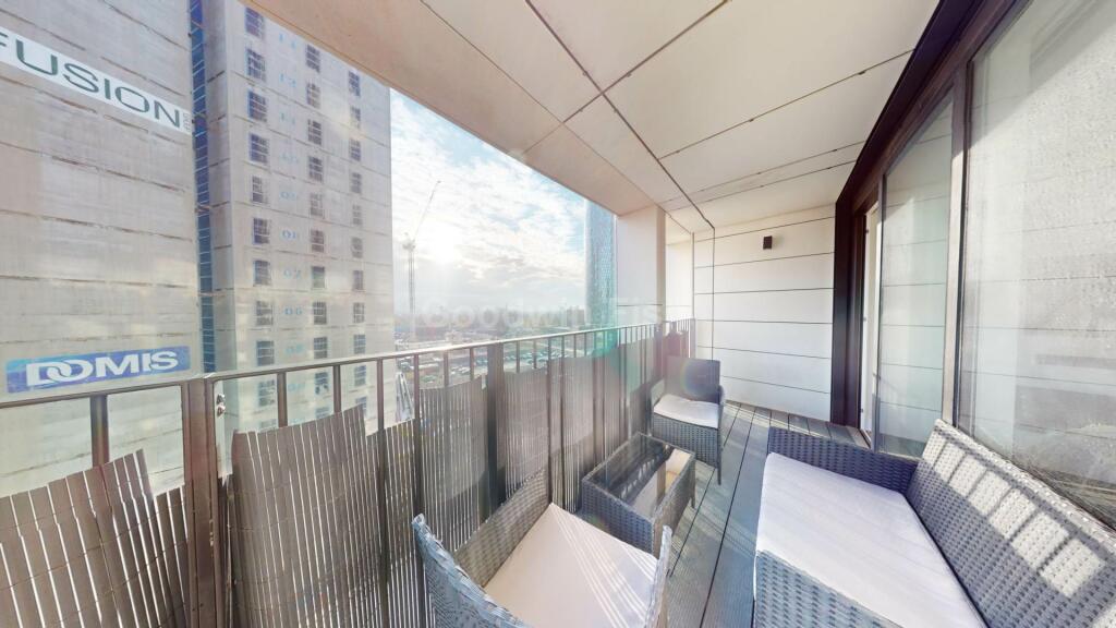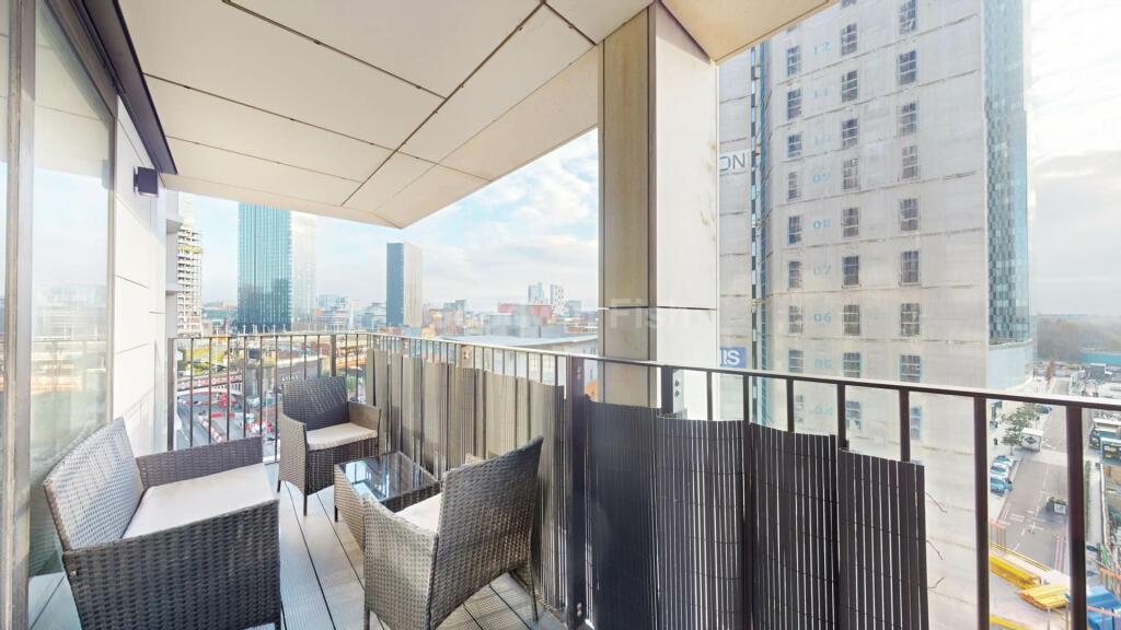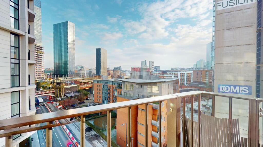 While the apartment lacks a private garden, it benefits from access to a landscaped communal garden within the development. The balcony offers some outdoor space with views of the Manchester cityscape, although this is more limited than a full private outdoor area.
