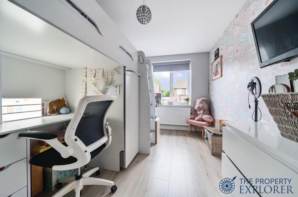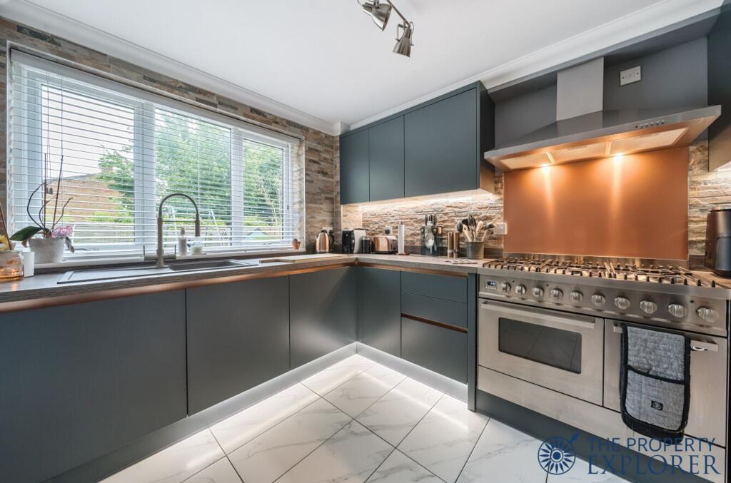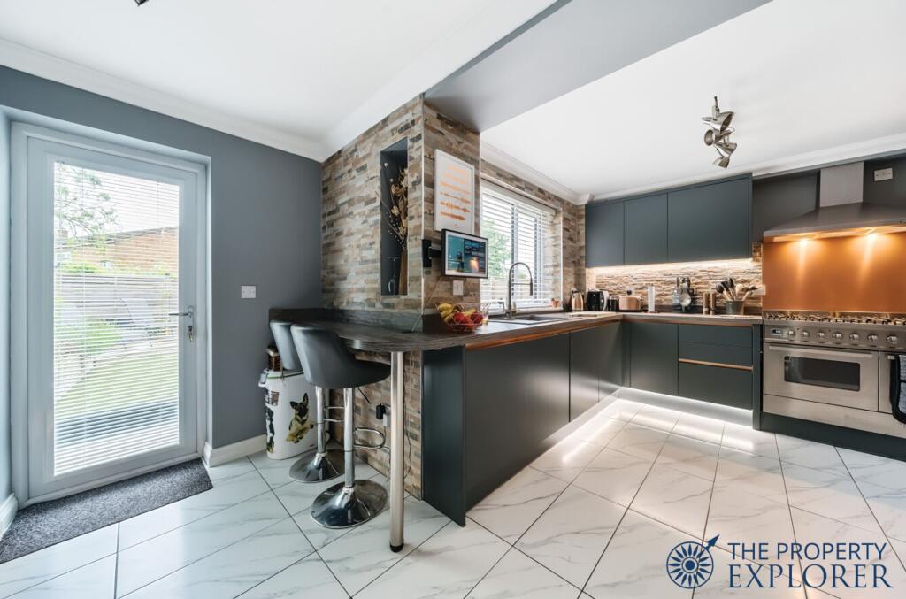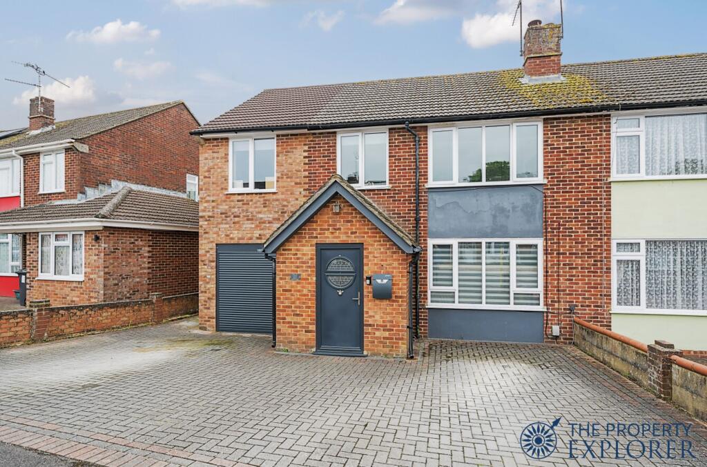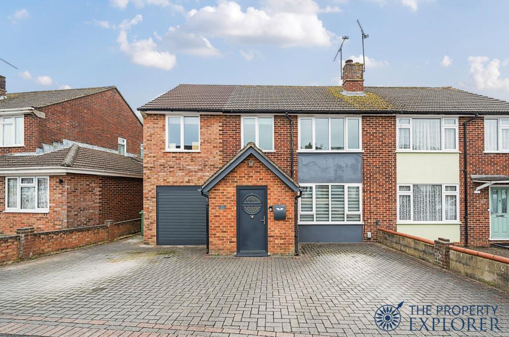 EXPLORER - Extended 4 bedroom semi-detached family home with 2 family bathrooms, downstairs WC and laundry room. Further benefits include luxury refitted kitchen, garage with electric door, off road driveway parking for 3 cars, and fully landscaped low maintenance sunny garden. Viewings recommended