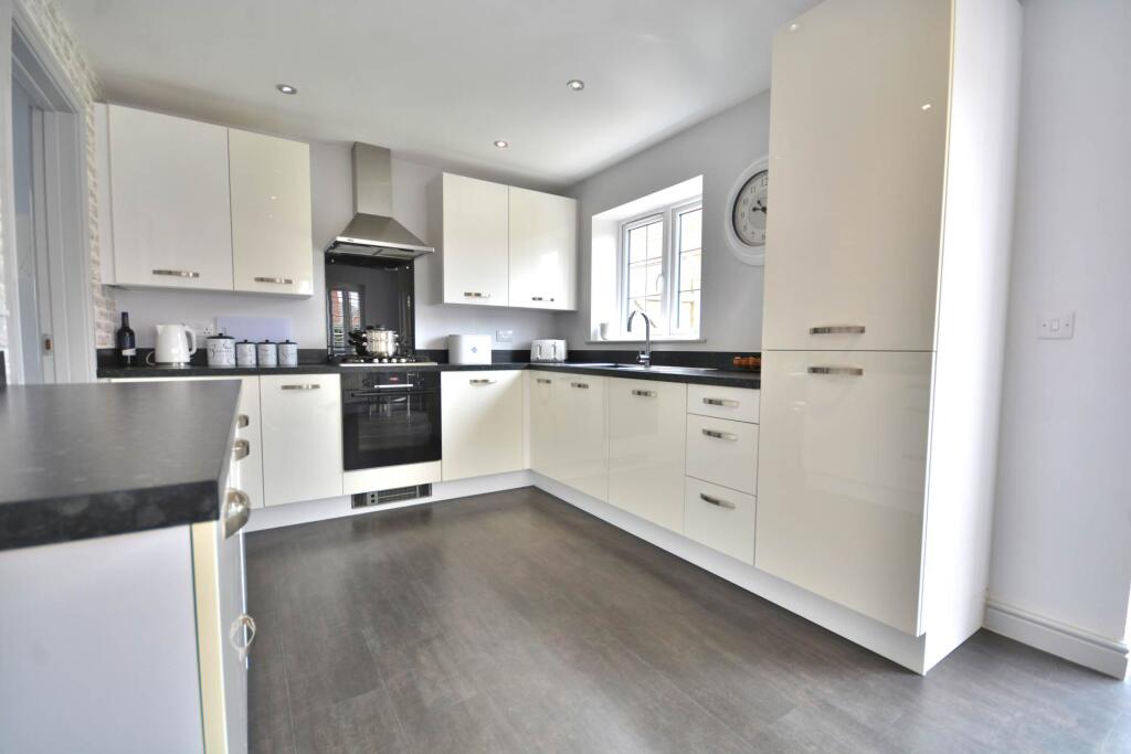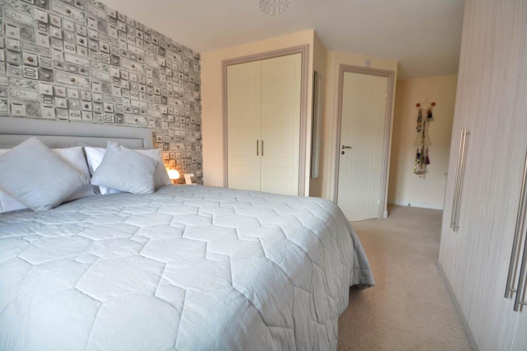 Modern three bedroom detached home built by Messrs William Davis Homes in 2015. Spacious lounge, kitchen/dining room with French doors & separate utility. Fitted wardrobes & en suite to main bedroom. Spacious family bathroom. Landscaped Westerly facing rear garden & detached garage. NO ONWARD CHAIN