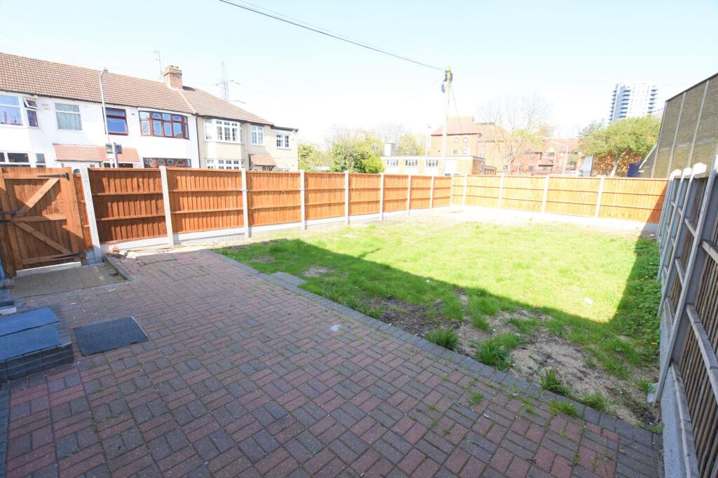 Spacious 3-bed end-terrace on Fallaize Ave, near Ilford Station. 2 reception rooms, modern kitchen, 2 double beds, 1 single bed, modern bath, ample rear garden, driveway for 1 car, on-street permit parking. Rear garage available for rent at £100/month.