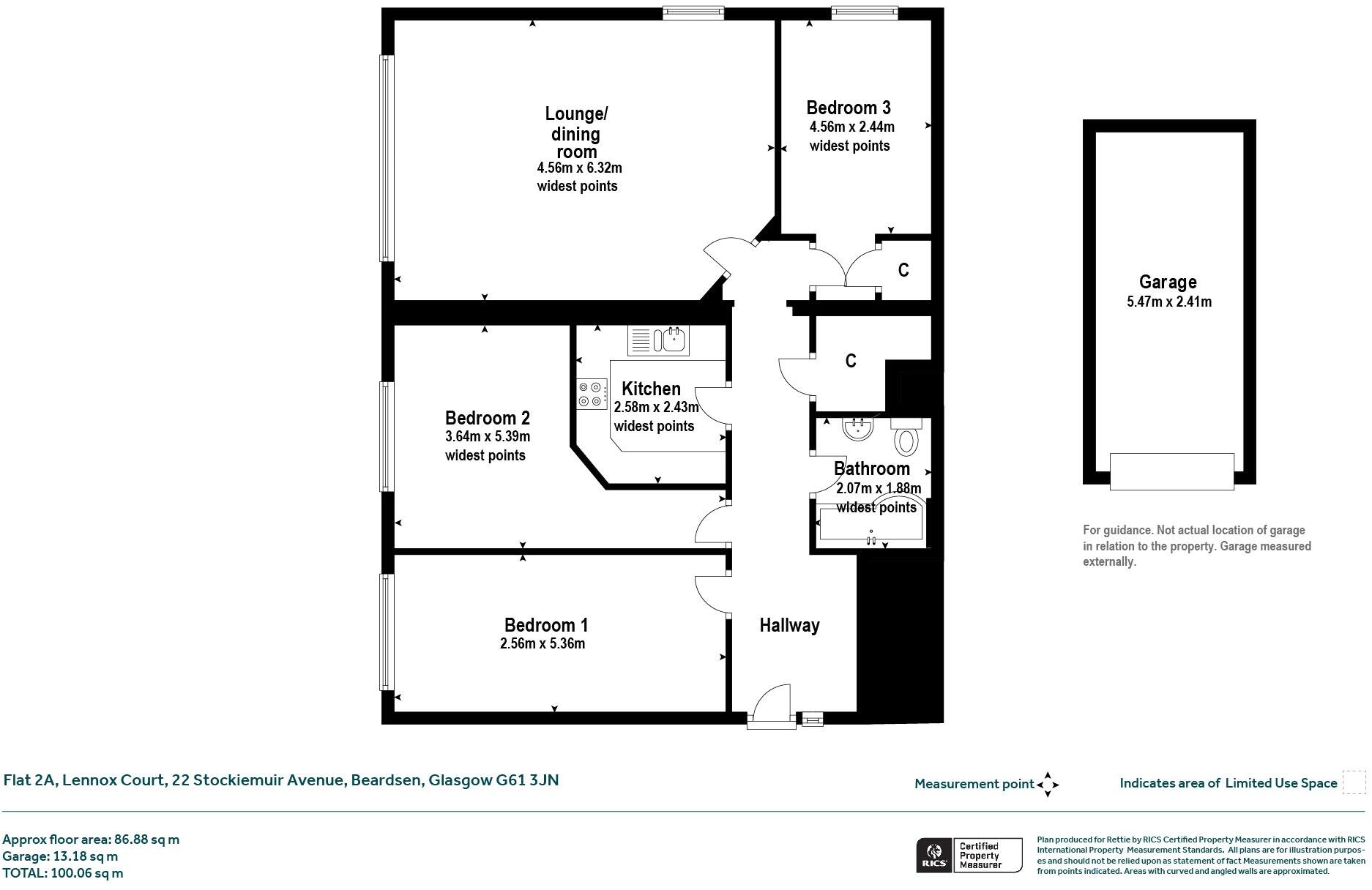 This three-bedroom flat is located in Lennox Court, Stockiemuir Avenue, Bearsden, G61 3JH. Bearsden offers a desirable suburban location with relatively easy access to Glasgow via the nearby ScotRail stations. The flat itself appears well-maintained and benefits from a recently modernised kitchen. The interior is presented in a neutral, modern style which may be appealing to a range of buyers. The lack of information about nearby schools is a notable omission. Although the flat offers three bedrooms, the lack of a private garden or significant external space is a key point for potential buyers to consider. While the flat appears in good condition, a professional survey is highly recommended. The listed price should be carefully considered given the absence of comprehensive comparative local pricing data and the limitations of communal outdoor space compared to the price points of nearby properties, many of which are houses. Further local market research is strongly suggested to confirm its value. This would assist in giving a more precise estimation of the property’s market value and would be vital for buyers seeking to make an informed decision.