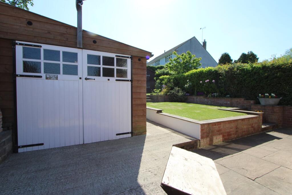 The property appears to be in good condition. The images show a well-maintained interior and exterior. The kitchen and bathrooms have been recently updated and are modern. There is also evidence of some period features, such as exposed beams, which adds character. The garden is of a reasonable size and includes a patio area and shed.