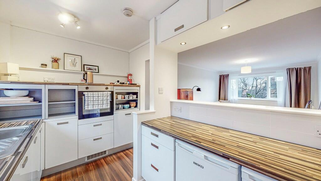The property is a 2-bedroom, 1-bathroom flat with a total area of 721.18 sqft. The list price is £85,000. The property appears to be in good condition, with recently updated kitchen and flooring visible in the provided photographs. While there is no explicit mention of the property’s condition in the listing, the images suggest a well-maintained interior. The property benefits from access to a communal garden area, although the plot size is listed as 0.00 sqft, suggesting this is not a private garden. The location is in Barrhead, which has nearby rail links to Glasgow, making it convenient for commuters. However, information on the proximity to schools and shops is not available. Considering comparable properties in the area, such as the nearby listing on Aurs Road for £89,950, the price of £85,000 appears reasonable, although further information on the average price per sqft for similar properties would allow for a more definitive assessment.