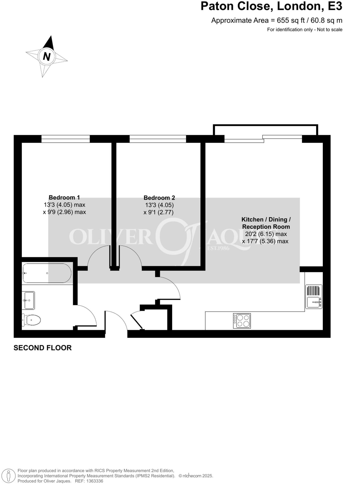 This is a two-bedroom apartment located in Bow East, London. The property offers 655 sqft of living space and includes one bathroom. The apartment is situated in a building on Paton Close. The location is well-served by nearby schools and transportation links. The apartment is in a reasonable condition, although some areas could benefit from updating. The asking price of £390,000 appears competitive compared to the average property prices in the area. Overall, this property presents a solid opportunity for buyers looking for a well-connected and reasonably priced home in London.
