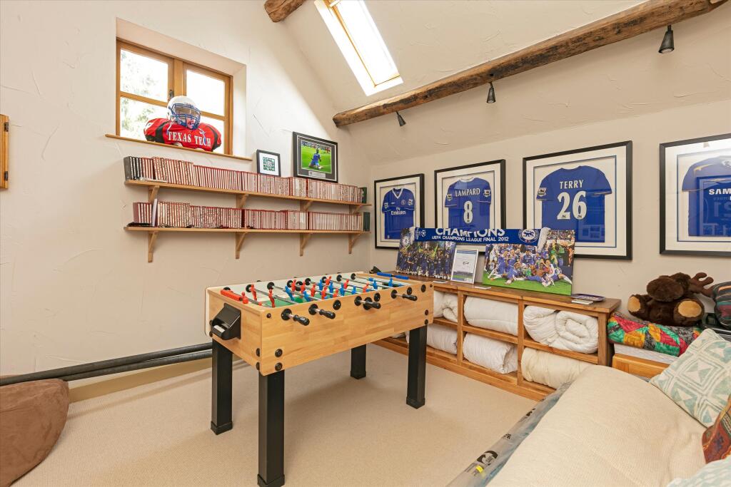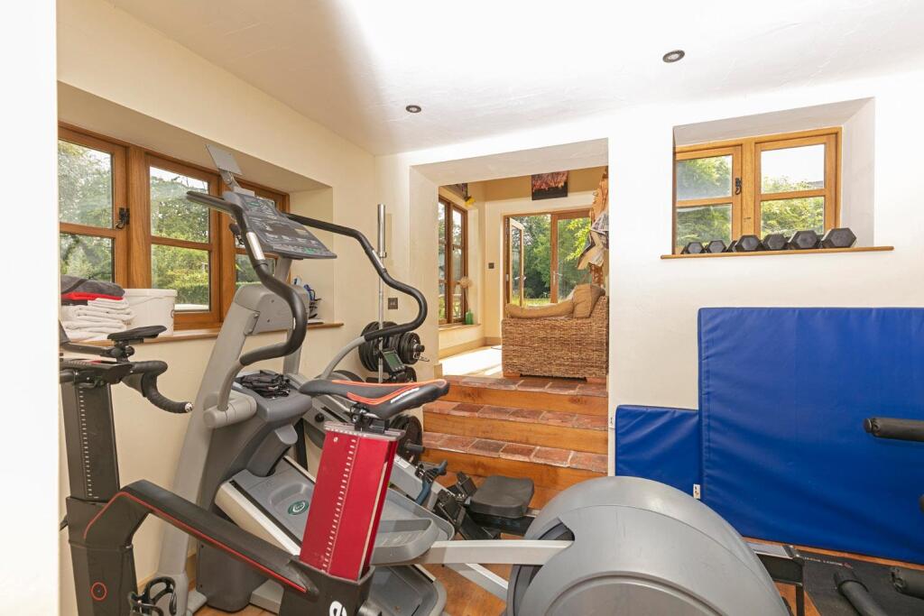 The property’s condition, from the provided photos, appears to be excellent. High-quality finishes and features such as the open-plan kitchen, dedicated gym area, and large gardens suggest a significant investment in the property.