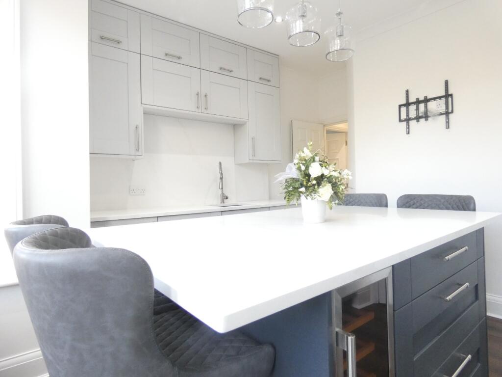 A 2 bedroom, 2 bathroom, ground floor apartment in a great location close to the centre of Lytham. Recently renovated to a high standard, the property has high ceilings, original features and modern a fitted kitchen.