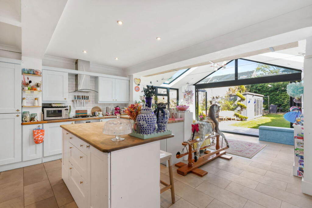 A stunning family home with a large driveway, garden and open plan kitchen/dining room. Utility. Cloakroom. Three bedrooms. Log burning stove.