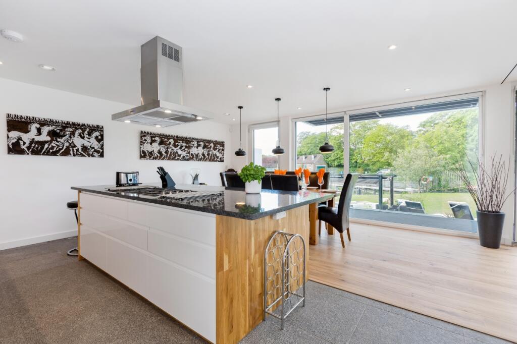 Superbly located by the waters edge, a striking contemporary and highly energy efficient, 4 bedroom detached family home with stunning views overlooking Old Windsor lock.