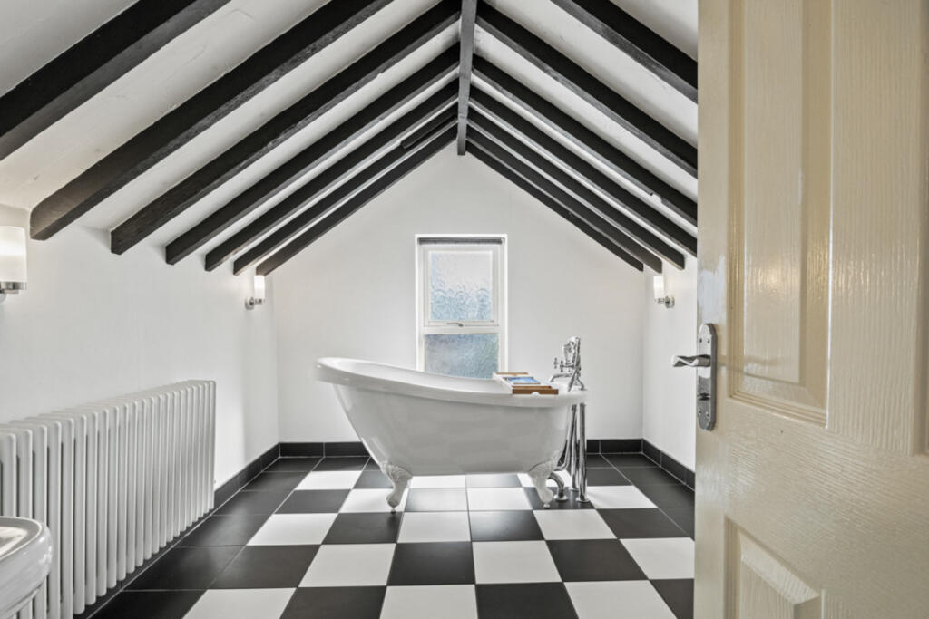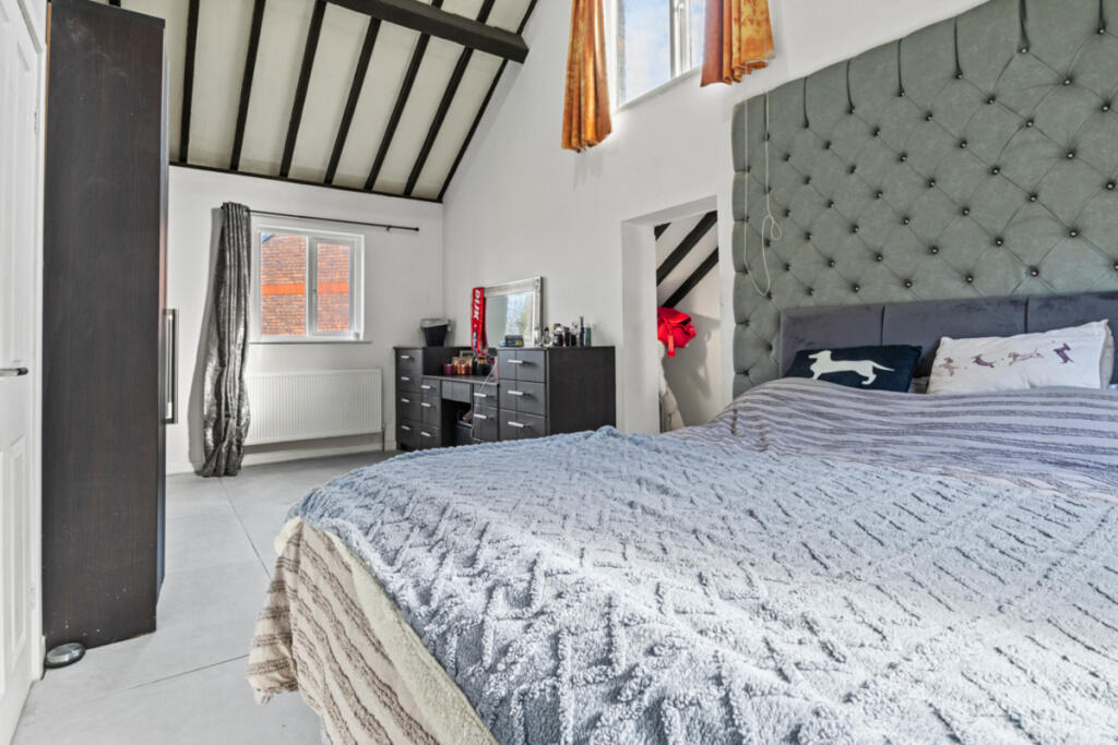 Charming 4-bed barn conversion with original features, two receptions, stylish kitchen, private gardens, garage, and over 1,600 sq ft—tucked away in a quiet cul-de-sac setting