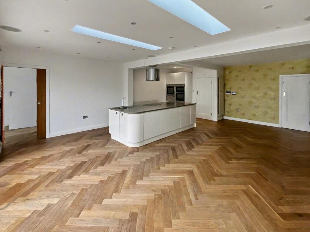 This large semi-detached house has been extended to a high specification by the owners to provide an impressive dining kitchen open plan to a family/ TV room measuring 25' 0" x 18' 10" (7.61m x 5.73m). There are three generous bedrooms on the first floor, a spacious lounge/cinema room to front...