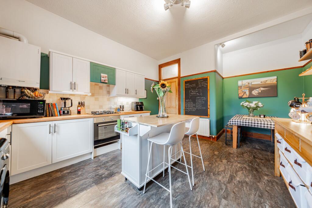 The property is located in Shawlands, Glasgow, with convenient access to public transport via nearby train stations. The interior is well-maintained and recently decorated, with modern fixtures and fittings in the kitchen and bathroom. Original features are well-preserved. The property is a flat and does not include a garden. Sufficient data is lacking to determine if the asking price is reasonable.