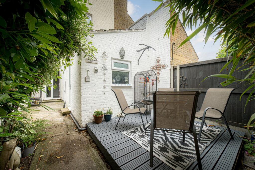 Based on the provided images, the property appears to be in good condition. The interior is well-maintained and presented, with modern fixtures and fittings in the kitchen and bathroom. The property benefits from a small, manageable garden area. There is evidence of landscaping and outdoor furniture, suggesting it is a usable space.