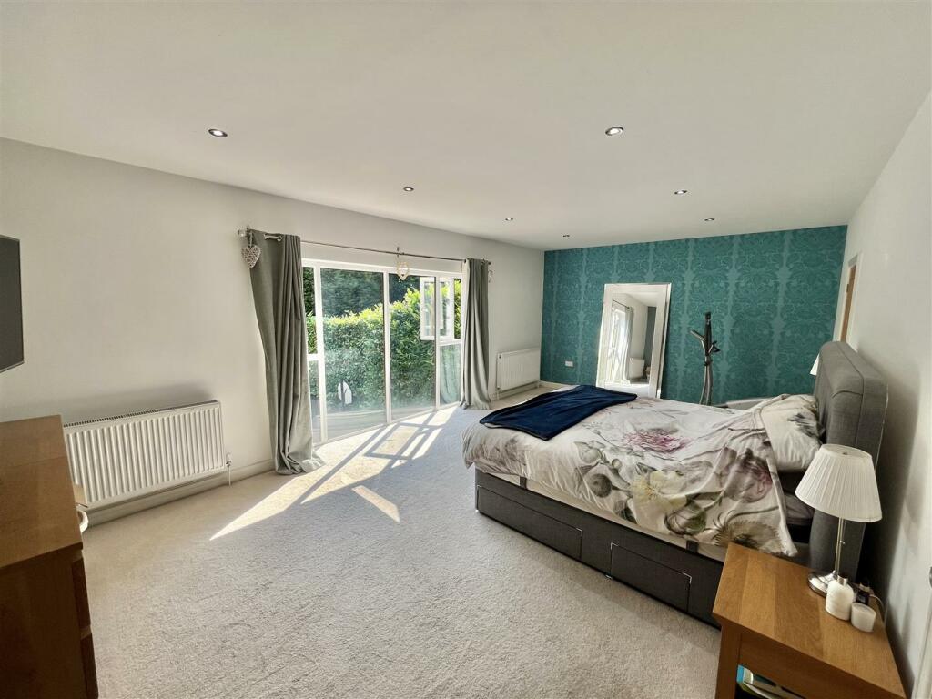 This five-bedroom detached house located on Mottram Old Road, Stalybridge, presents as a high-end family home, extensively modernised and well-presented. The property boasts a spacious layout, spreading over two floors and featuring approximately 3809 sqft of living space. The photos highlight a modern kitchen with an island, multiple contemporary bathrooms, and well-proportioned bedrooms with built-in wardrobes. A notable feature is the sizeable garden. There is clear evidence of significant investment in the home’s renovation and upgrades.