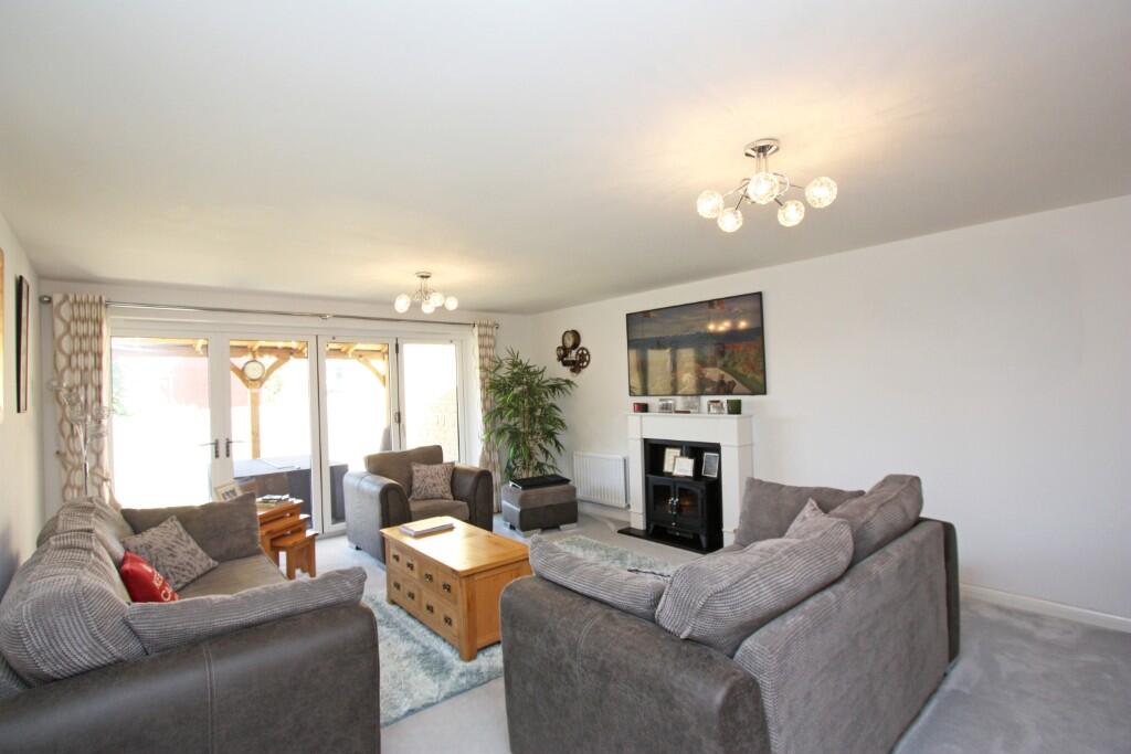 Beautifully presented and stylishly appointed spacious five bedroom detached house which has been improved by the current owners. Superb kitchen/dining room with bi-fold doors, living room with b-fold doors to the pagoda. Study. Dining/play room. Three bathrooms. Enclosed landscaped garden. Garage
