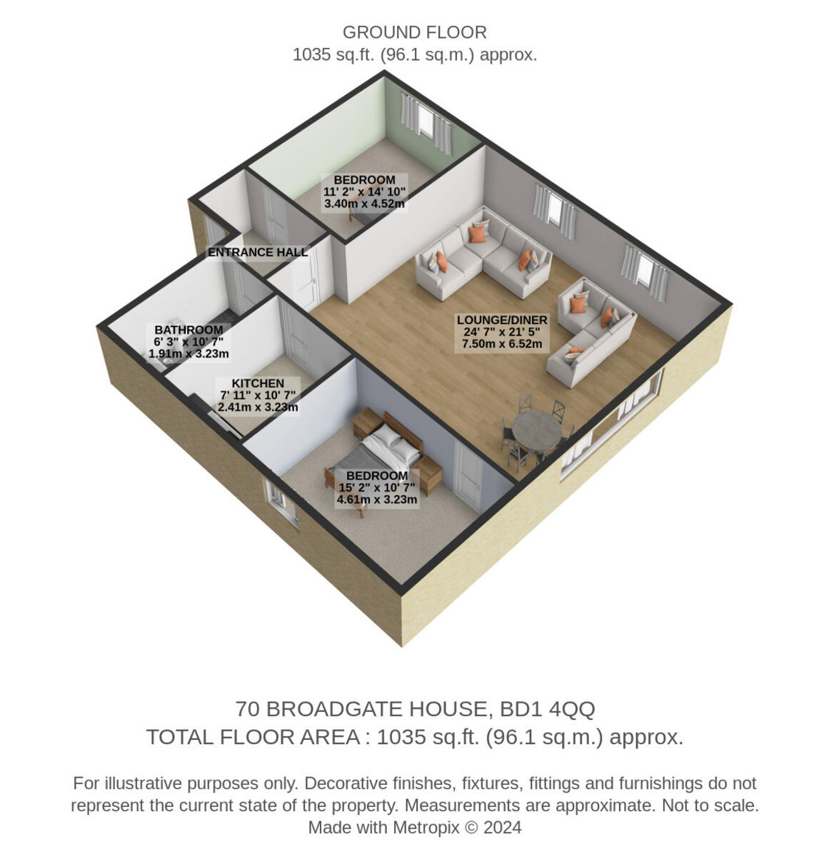 This two-bedroom, one-bathroom apartment on Broad Street, Bradford, presents a compelling proposition for those seeking city-centre living. Its location is a major asset, offering convenient access to Bradford Forster Square train station, making commuting straightforward. The property itself boasts a unique aesthetic, highlighted by the exposed wooden beams and brickwork, creating a stylish and spacious living environment. The interior is generally well-presented and modern with a modern kitchen and an open plan layout. However, the absence of any outdoor space is a notable drawback, and prospective buyers should carefully weigh this against its other advantages. The overall value seems relatively reasonable given the location and features, but potential buyers should independently verify comparable property prices in the immediate vicinity for a more comprehensive assessment. The property’s size is significant, with 1034.41 square feet. Further investigation into the local market prices per square foot and a professional survey are advisable before a final purchasing decision.