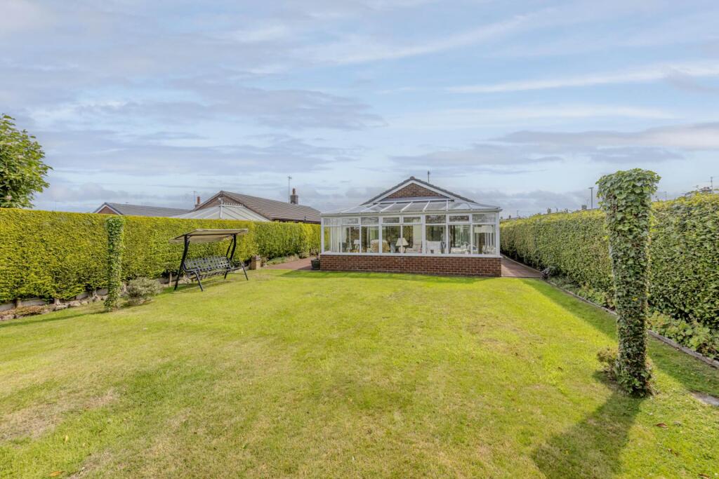 This is a detached bungalow in Meirheath, near Stoke-on-Trent. It features two bedrooms, one bathroom, a well-maintained garden, off-street parking, and a garage. The interior appears to be in good condition, with a modern bathroom and a conservatory leading to the garden. Meir Heath Academy is nearby, making it a potentially attractive location for families. The asking price of £300,000 seems reasonable when compared to nearby listings.