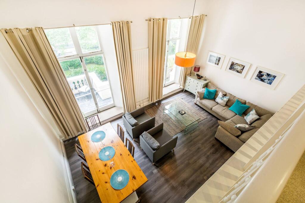 While the listing does not specify a plot size, the images do not show a private garden. Therefore, it is assumed that the property does not have a garden.