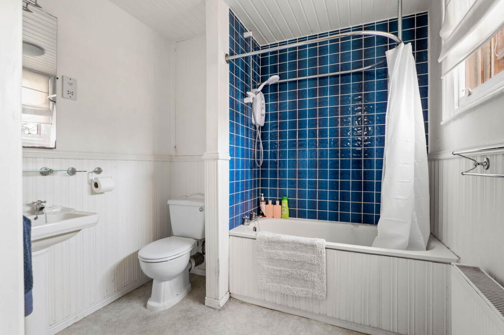 The property appears to be a period property, exhibiting traditional architectural features. While some areas, such as the kitchen, appear to have been recently modernised, other parts of the house, particularly some bedrooms, show signs of needing some renovation or modernisation. The flooring in one bedroom, for example, appears damaged and requires attention. The garden is a significant feature, offering multiple outdoor spaces; a front garden, a side courtyard and a rear garden. The presence of mature plants and landscaping suggests a well-established and relatively private outdoor area.