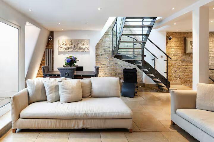 An exceptional triplex apartment situated over the upper floors of this beautiful red brick period conversion. The flat offers great open plan living space with exposed brick and a steel and glass staircase.