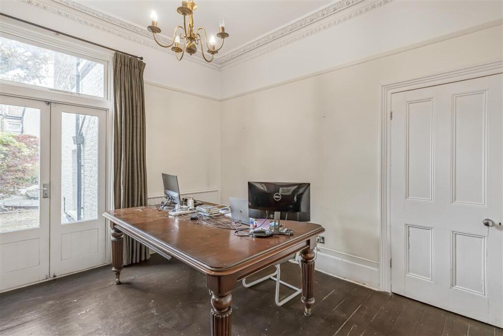 This magnificent, natural three storey, four double bedroom, semi-detached house, is located on a prime residential road in central Balham and presented in good order throughout. A welcoming hallway, with restored cornicing, leads to a charming front reception room with feature fireplace, and..