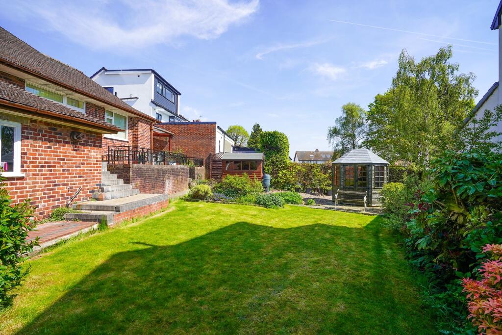 This property is a detached bungalow located in the Dore and Totley area of Sheffield. The area is known for its excellent schools and is within a reasonable distance of local amenities. The property itself appears to be well-maintained and in good condition, benefiting from a garden and a garage. While the square footage is smaller than the average for the area, the list price seems reasonable considering the location and condition.