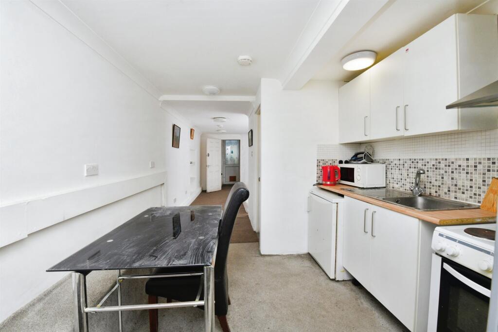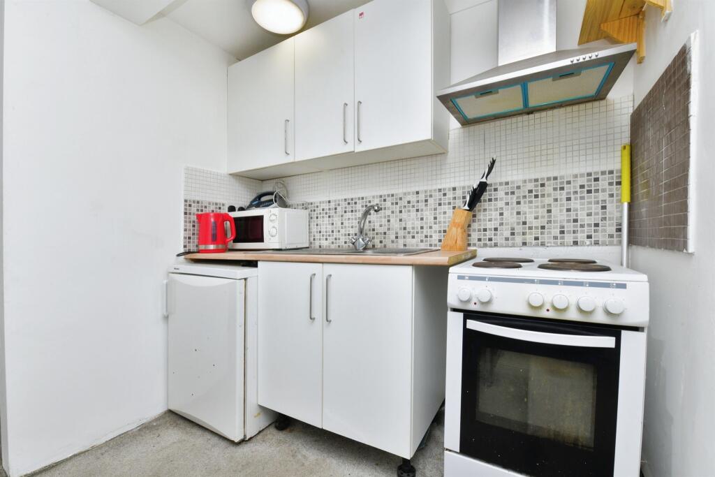 Offered with vacant possession, this lower ground floor studio apartment, with entrance porch, living/bedroom, shower room, kitchen/dining room, rear porch and W.C and access to a communal rear garden and on street parking.