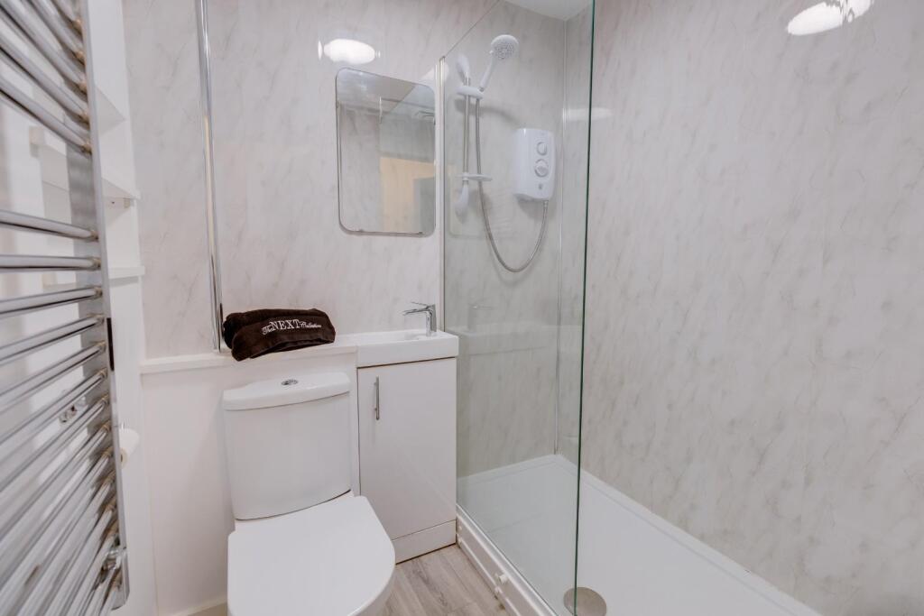 This is a one-bedroom flat located on Beech Avenue in Headlands, Northampton. The property appears to be in good condition, with modern fixtures and fittings. The bathroom and kitchen look recently renovated. The property is located close to several schools, making it a good option for families. The property is listed for £110,000, which seems reasonable given its condition and location. The flat benefits from communal gardens and parking.