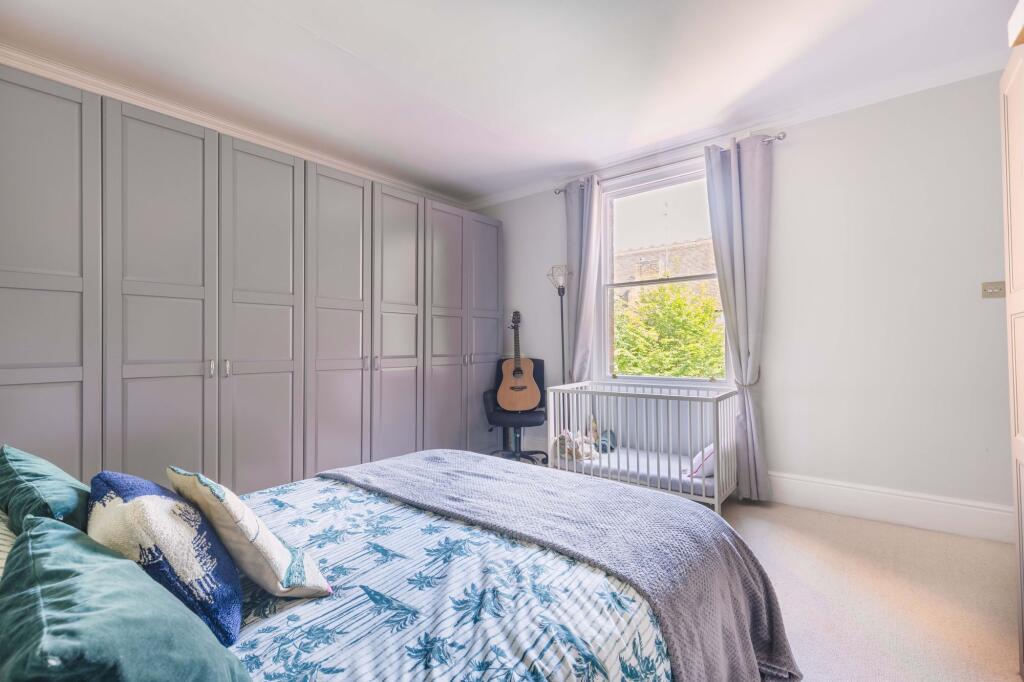 Charming 2 double bedroom flat with peaceful outlook over trees. Generous room proportions, light and bright and beautifully presented throughout. Communal garden. Short walk to all town amenities.