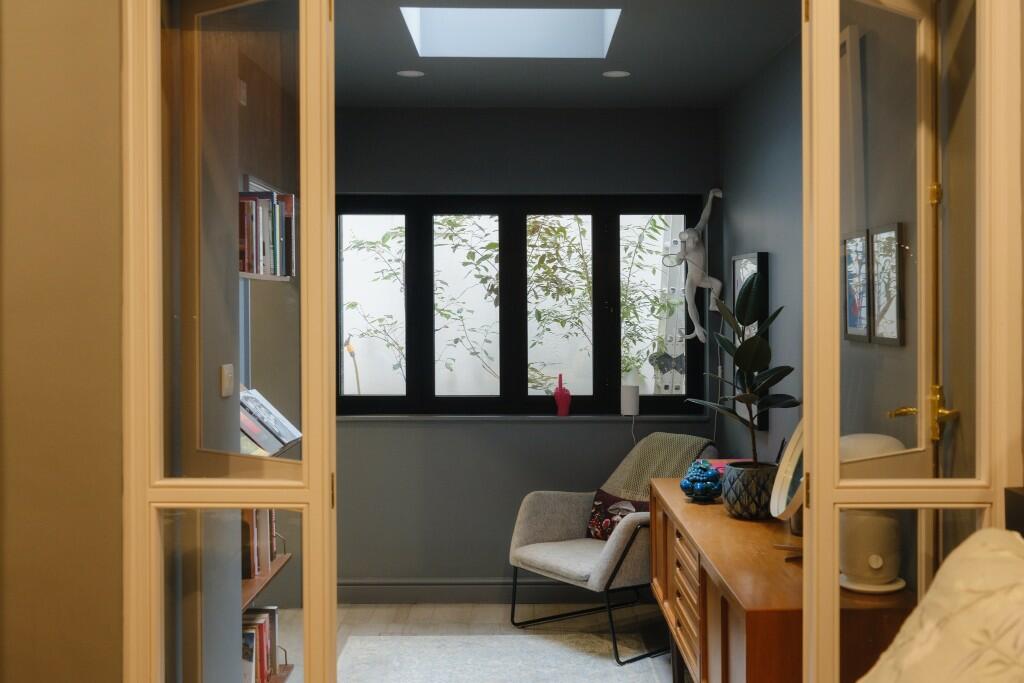 Nestled along a peaceful street in Sydenham, this striking converted warehouse presents an unexpected architectural gem. Featuring an inverted layout, the two bedrooms are situated on the ground floor, while the living areas unfold above, culminating in a private roof terrace that crowns the home.