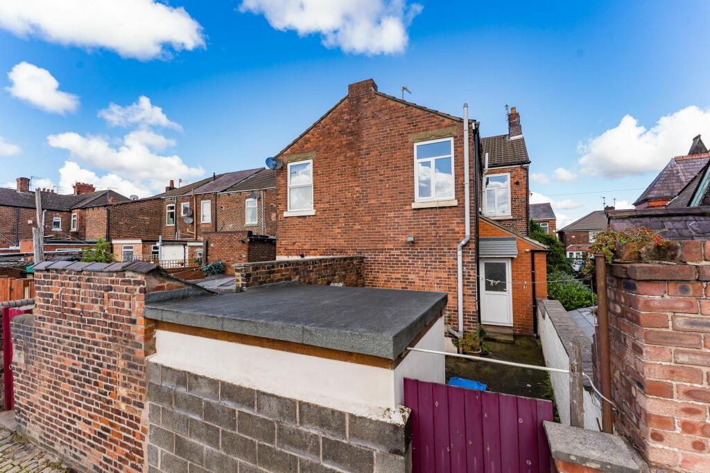 However, the property requires significant modernisation. The interior finishes are outdated, and cosmetic repairs are needed. The small garden, more accurately described as a paved patio area with a small shed, is not a standout feature. The overall impression from the photos is that this is a property with good bones but requiring significant updates and renovation to bring it to a modern standard.