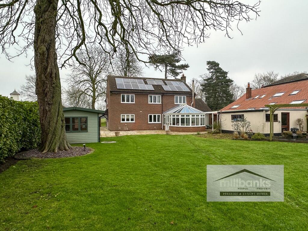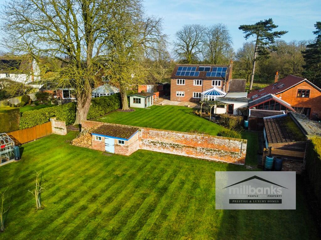 "Millbanks Prestige & Luxury Homes" present this stunning family home overlooking the historic village green, set on a half-acre plot with useful outbuildings. There are 5 double bedrooms off a impressive galleried landing, 4 recep. rooms, and a conservatory offering lovely west-facing garden views.
