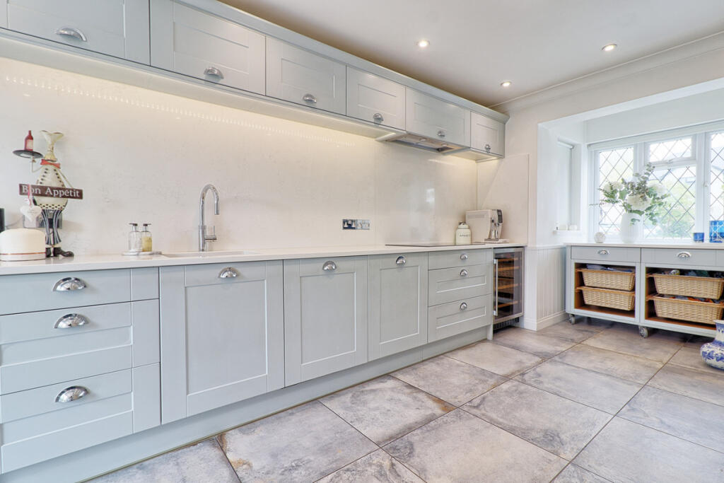 This property is a 4 bedroom, 3 bathroom detached house located in the Emerson Park area of Hornchurch, Havering. The property benefits from being close to several highly-rated schools, including Ardleigh Green Junior School and Nelmes Primary School, both rated as Outstanding by Ofsted. Emerson Park train station is also within walking distance, providing convenient access to London. The house itself appears to be in excellent condition, having undergone recent modernisation whilst retaining some traditional features. It features a large garden with a decked area, perfect for outdoor entertaining. The asking price is slightly higher than the average price for the area, but given the property’s condition, size, and location, it may represent good value for money.