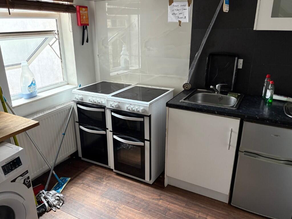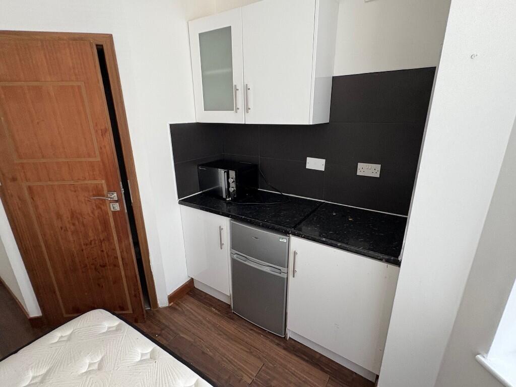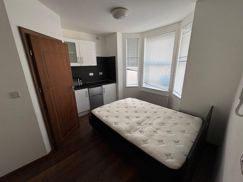 Studio flat with open plan kitchenette & private Shower room W/C. Double Glazed with wood floors.The flat is served well by local shops and are under 10 minutes walk from Slough Town Centre and train station.Use of utility room with large ovens and washing machines