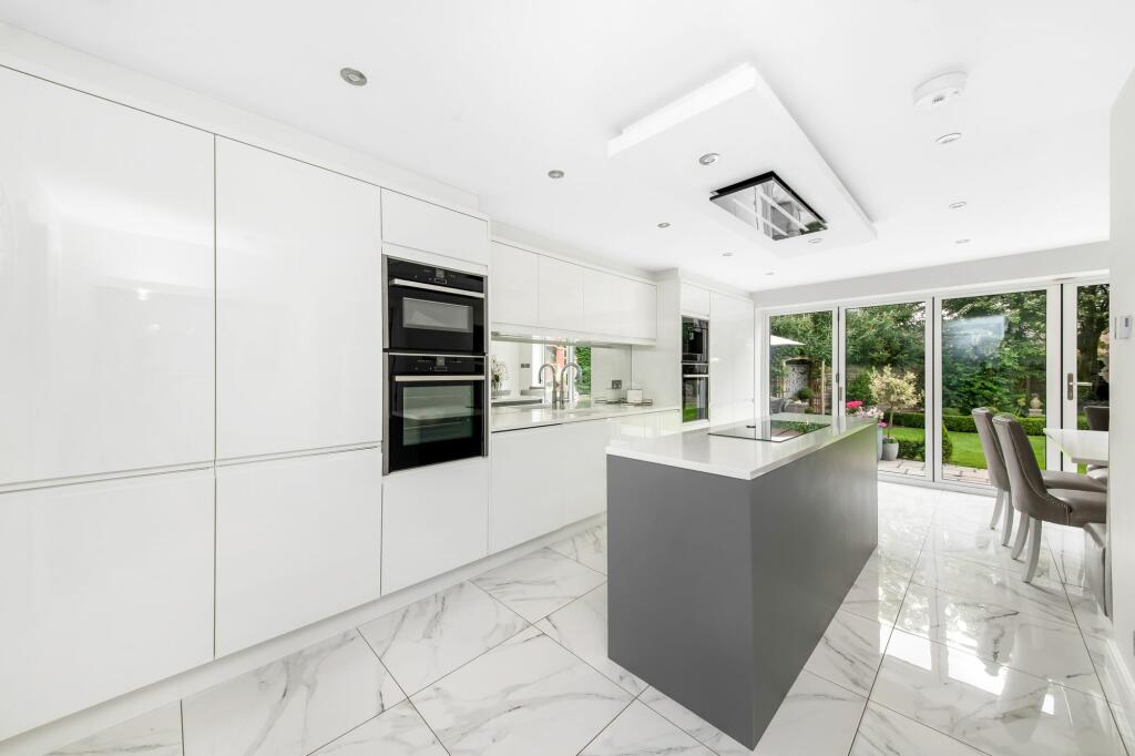 The property’s interior, as depicted in the photographs, showcases a high standard of finish and modern design. The kitchen is exceptionally well-equipped with high-quality appliances, and the bathrooms are stylish and contemporarily appointed. A sense of spaciousness and well-considered design is evident throughout the house, which further enhances its desirability.
