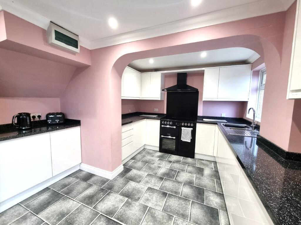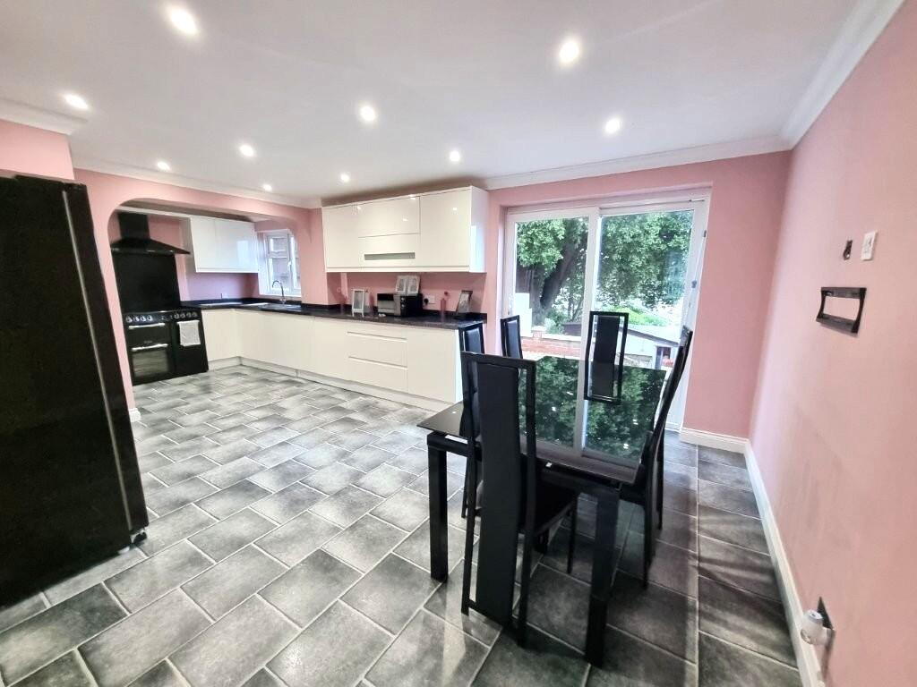 This is a four-bedroom semi-detached house located in Stoke Park, Ipswich. The property features a modern kitchen and updated bathroom. It also benefits from a garden, although it is terraced and may require some landscaping. The house is situated in a residential area with convenient access to local schools and transportation links, including Ipswich train station. The property appears to be in generally good condition, although some areas could benefit from cosmetic improvements. The asking price of £300,000 seems reasonable given the location, condition, and recent sales in the area.