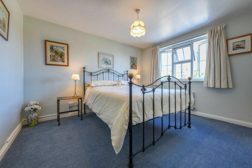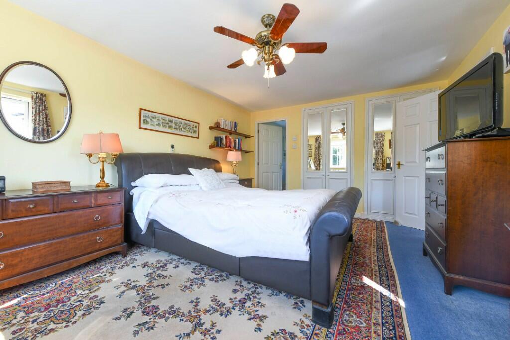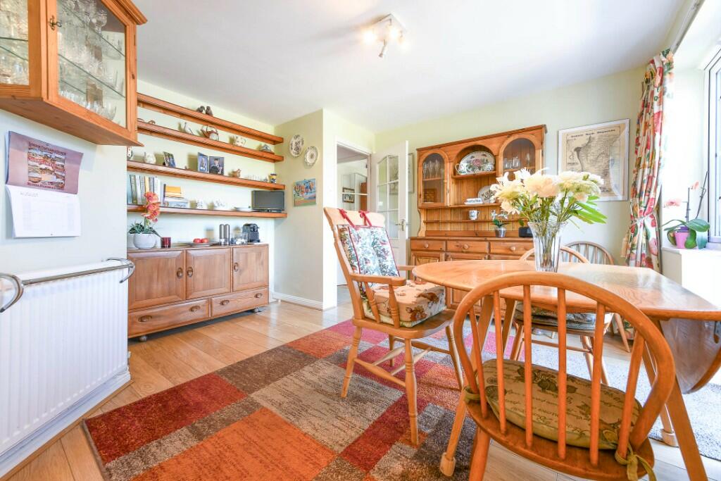 This four-bedroom, three-bathroom detached house in Ashford, Kent is presented as a family home situated on Sandyhurst Lane, offering potential buyers a blend of modern convenience and suburban tranquility. The property is described as occupying a generous corner plot. Photos reveal a well-maintained exterior and a sizable garden, complete with a conservatory, patio areas, and mature plantings. The interior images showcase a house which is in reasonably good condition and fairly well-maintained, though the decor might benefit from modern updates to appeal to a broader range of potential buyers. The house has a conventional layout, with good sized rooms.