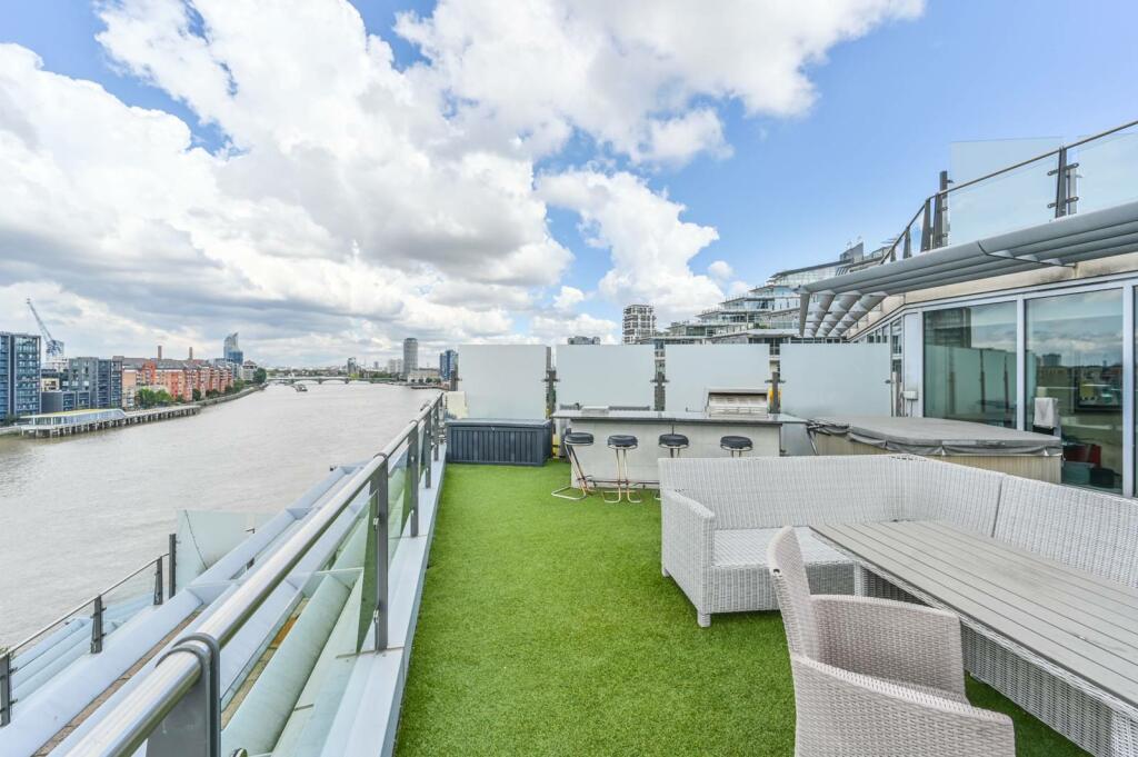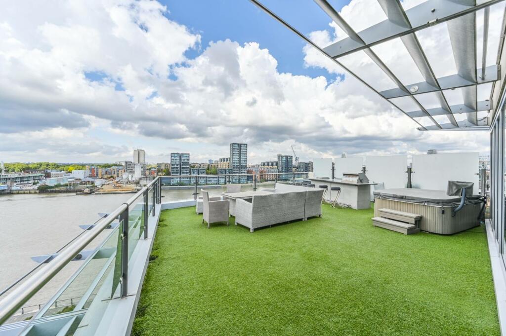 This excellent 7th floor apartment offers 3 double bedrooms with the main featuring en suite, spacious reception with dining area, and stunning views of the River Thames and across the City from the large roof terrace.