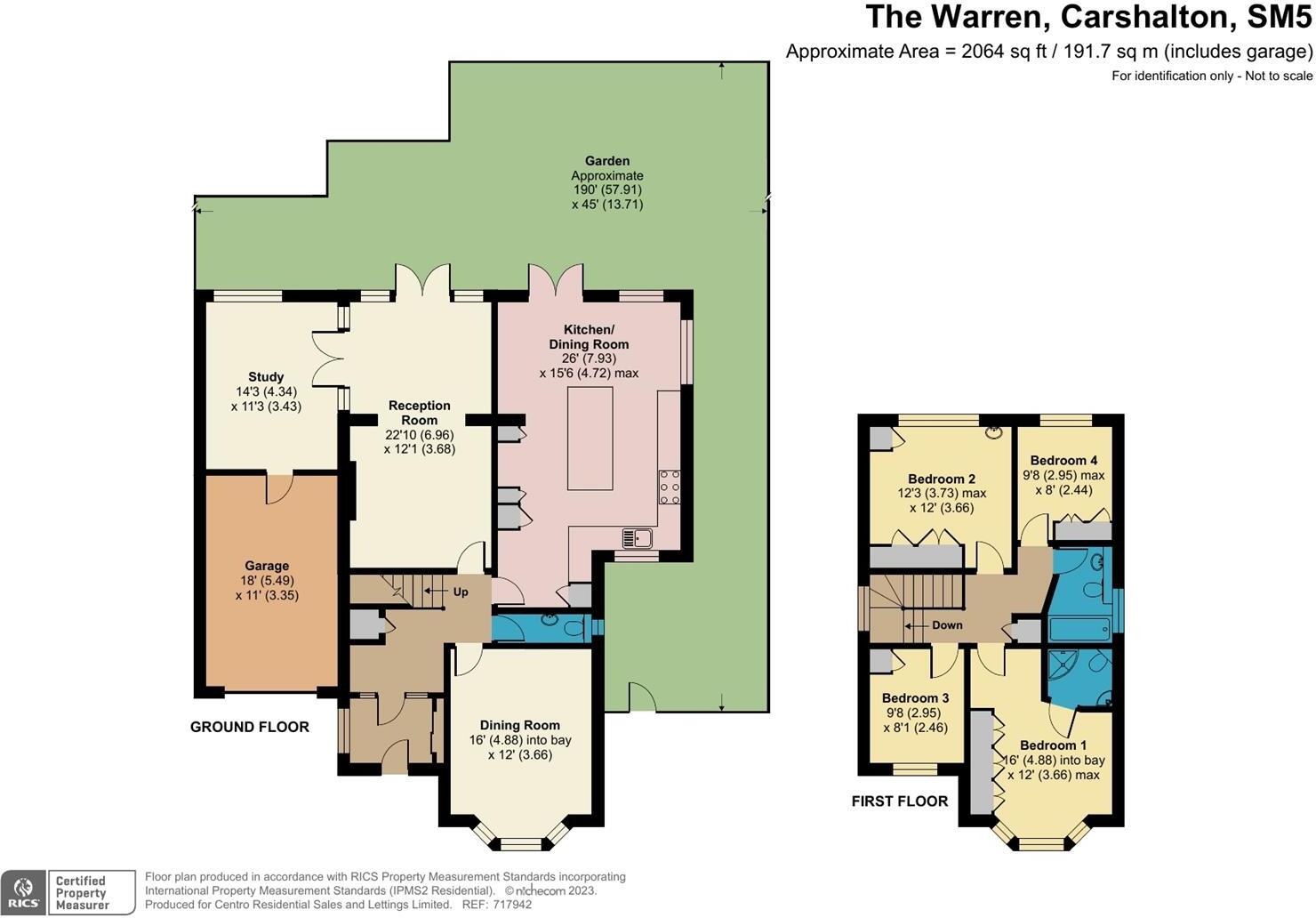 The property includes a substantial garden, as seen in the photographs. The garden appears well-maintained and offers ample space for outdoor activities. The size of the plot is 2,064 sqft, which is a considerable size for a property in this area.