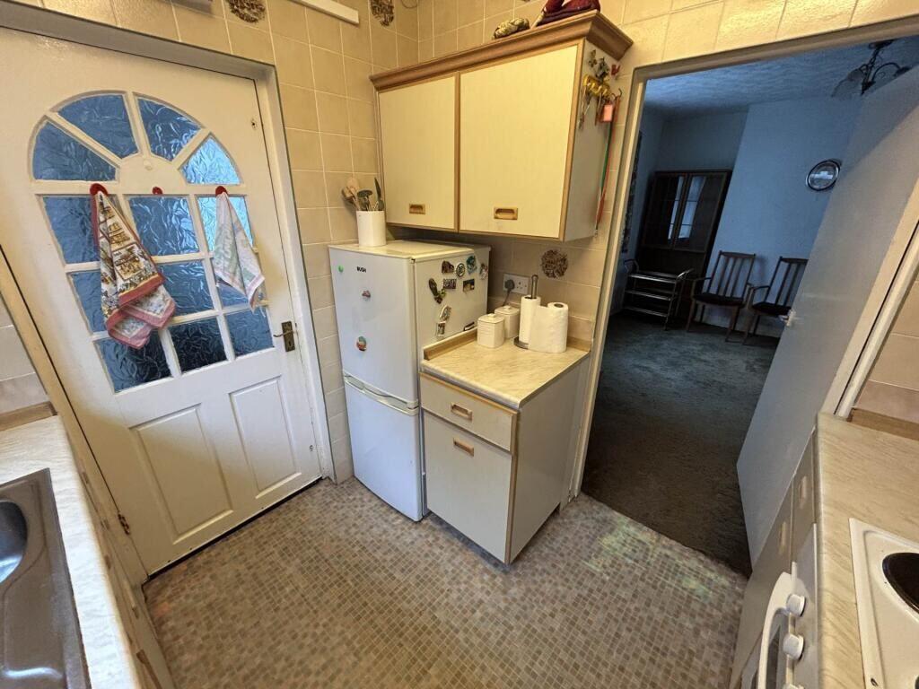 The property itself requires significant modernization. The photos reveal outdated interiors, including carpets, kitchen, and bathroom fixtures. These would need updating to enhance appeal and increase market value. This will add to the overall costs for a buyer. The garden, while of a decent size, is currently unkempt and will require considerable landscaping to fully benefit buyers.