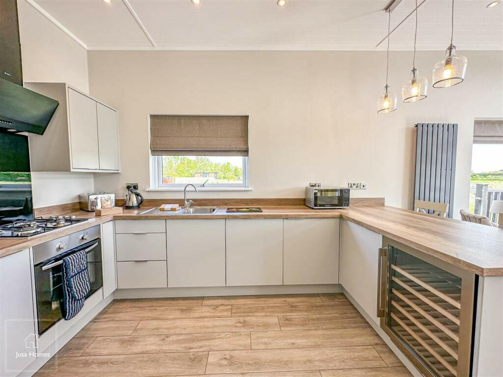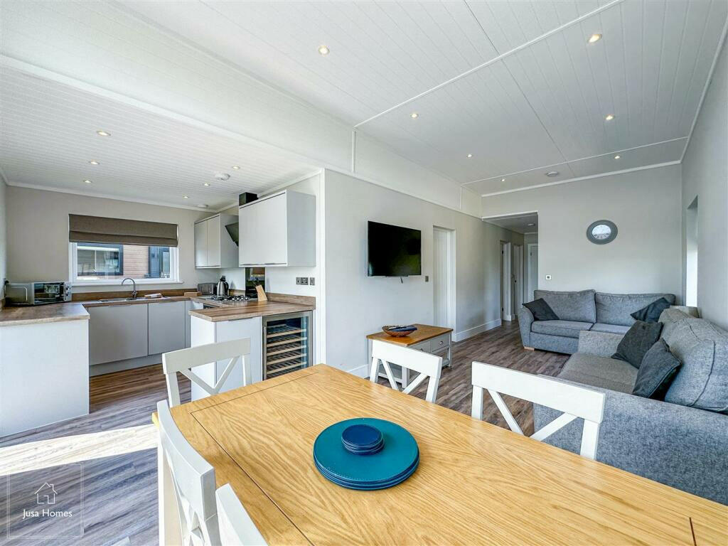 This property is a modern, well-appointed two-bedroom, two-bathroom park home situated at Regatta Point, in Salt Marsh Lane, Hambleton. The lodge boasts a contemporary design, with high-quality finishes and fixtures evident throughout. The open-plan living area is spacious and bright, leading to a decked area overlooking a picturesque water feature, creating a serene and attractive setting. The kitchen is well-equipped and integrated appliances further enhance convenience. Both bathrooms are modern and feature quality tiling and sanitaryware. The bedrooms are well-sized and furnished to a high standard, offering comfortable accommodation. The proximity of Hambleton Primary Academy (rated ‘Outstanding’ by Ofsted) and other good-rated schools adds to its desirability. Transport links to Poulton-le-Fylde are relatively good with the train station being a short distance away. The overall feel is one of modern luxury, but the purchaser must be aware of the limitations of park home ownership. The lack of private outdoor space and the associated site fees should be taken into consideration before purchase. The pricing appears reasonable in comparison with other similar properties in the area but needs to be assessed within the context of the park home ownership model, lease conditions and ongoing annual fees.