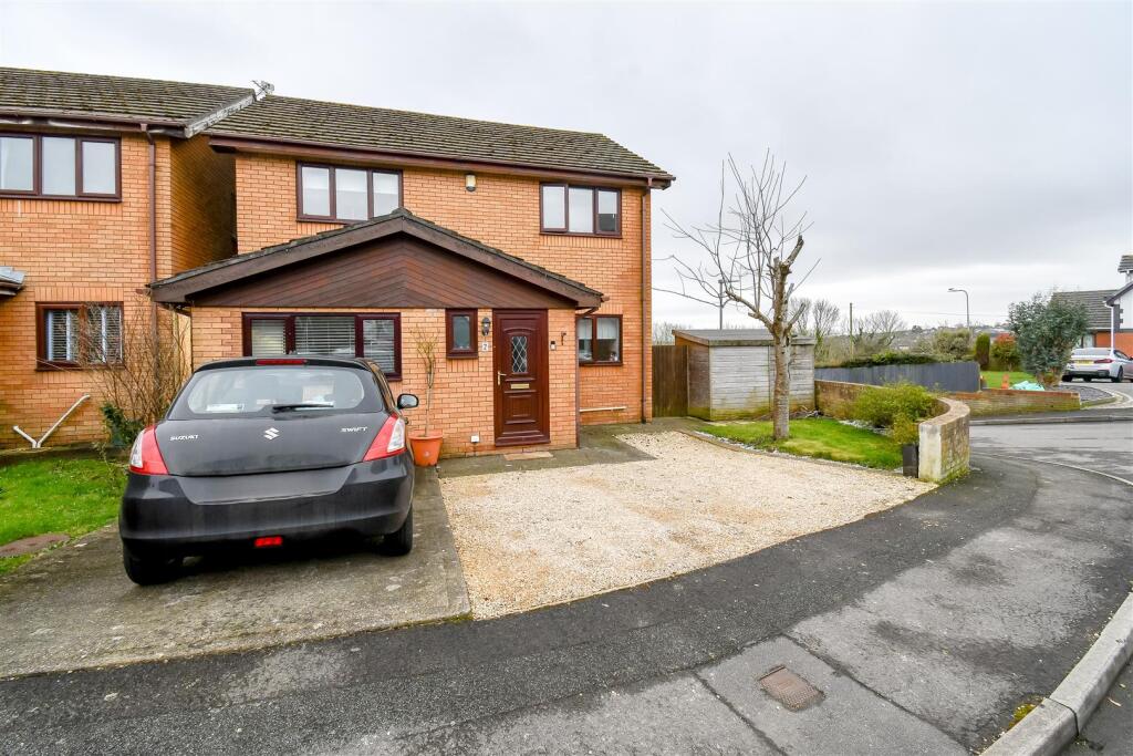 A well presented, detached dwelling situated on a larger than average plot. Placed in a popular area, off the link road providing links to M4/Cardiff. The property briefly comprises to the ground floor:- w.c. cloakroom, fitted kitchen to the front, living/dining room with patio doors ope...