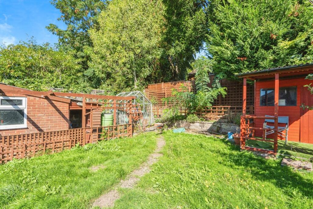 This is a 4-bedroom semi-detached bungalow located in Aldershot, Hampshire. The property is situated in a convenient location, with nearby schools and transportation links. However, the property is in need of renovation, particularly the bathroom and some of the rooms. The property benefits from a good-sized garden with multiple sheds and a greenhouse. Considering the condition and location, the list price of £385,000 seems reasonable but potentially a bit high compared to the average property price in the area.