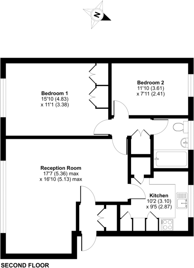 A bright and spacious two-bedroom flat set on the second floor of a secure, purpose-built development. This well-proportioned property features a generous reception room, a separate fitted kitchen, two good-sized double bedrooms, and a modern bathroom, offering comfortable living throughout.