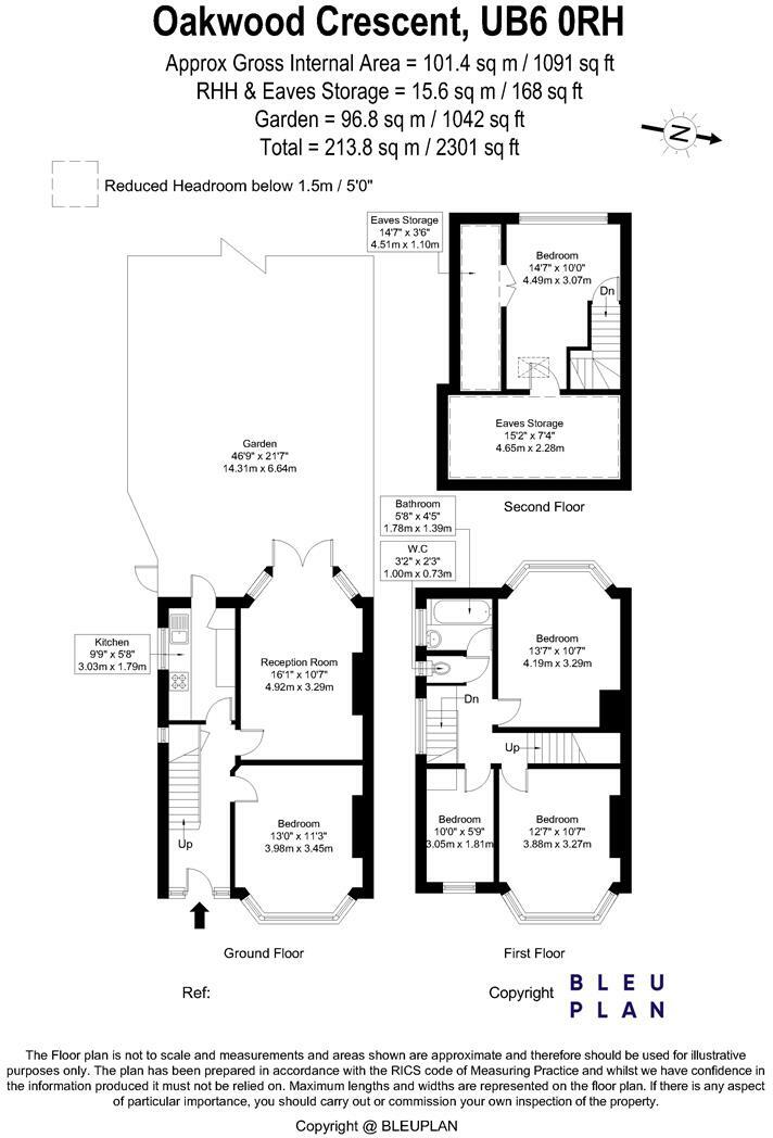 The property is located on Oakwood Crescent, Greenford, in the UB6 0RF postcode. Based on the provided information and images, the property appears to be a four-bedroom house with one bathroom. It has a sizeable plot of 2,301.32 sqft and a total area of 2,132.22 sqft. The property benefits from a garden.
