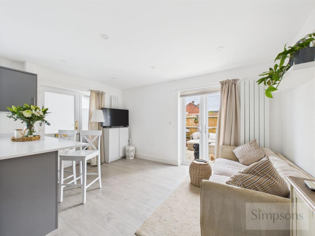 An open plan, one bedroom, two storey house with a South West facing garden and parking space for two cars.
