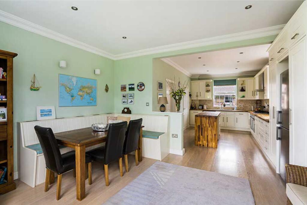 This five-bedroom, three-bathroom property located on Swinderby Road, North Scarle, Lincoln, LN6 9EU, presents as a substantial family home. The property is presented as being in excellent condition. Images show modern fixtures and finishes throughout the house, which appears well-maintained. The kitchen and bathrooms look updated, and living spaces are spacious and well-designed.