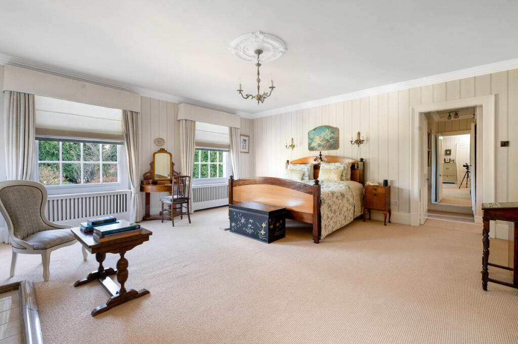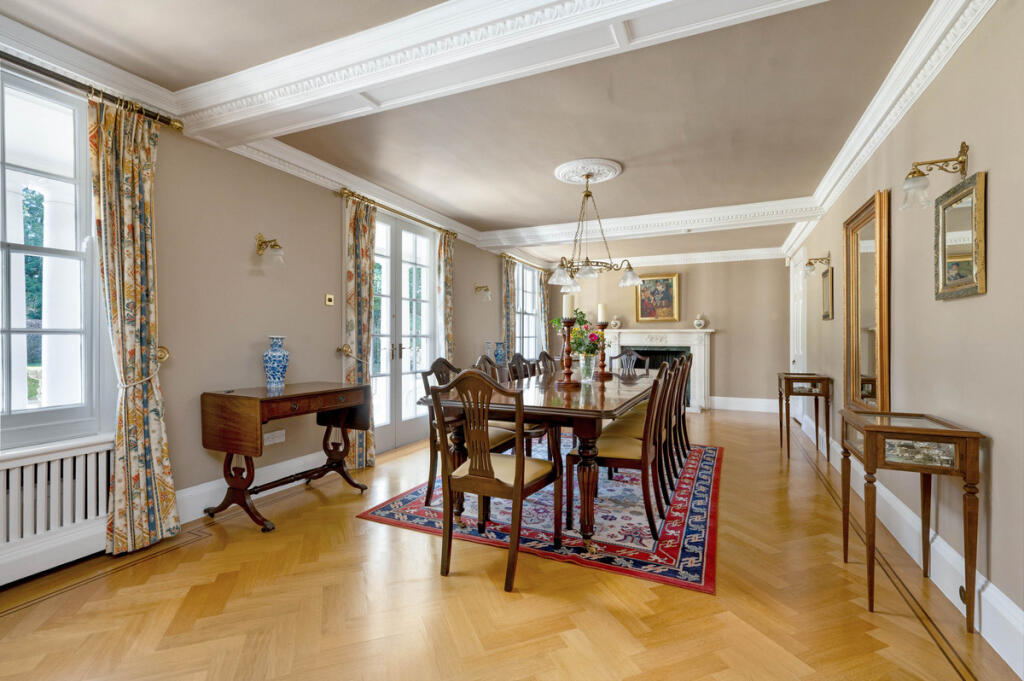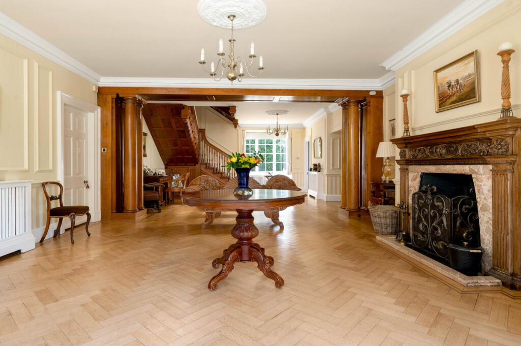 Roundhill is a substantial detached property situated in Kirby Muxloe, Leicestershire. The property benefits from a large plot size of 7,683 sqft and boasts 7 bedrooms and 5 bathrooms, spanning an impressive 16,408 sqft of living space. The property is presented in excellent condition throughout and has been well maintained. The images reveal a high standard of finish, with many original features retained and tastefully updated. The property benefits from a large garden, offering significant outdoor space. The location is desirable, with good access to local schools such as Kirby Muxloe Primary School (rated ‘Good’ by Ofsted) and several others within a reasonable distance. Transportation links are also convenient, with Narborough railway station approximately 7.14 km away. Considering the property’s size, condition, location, and the land it occupies, the list price of £2,350,000 appears high relative to the average price per square foot in the area (£402). However, the lack of comparable properties of similar size and specification in the immediate vicinity makes a definitive price comparison challenging. Nearby properties, while offering a sense of the local market, are significantly smaller and thus less comparable. The higher average price on Stamford Road (£1,200,000) suggests that properties in prime locations within the area can command significantly higher prices. The property’s unique features, including its size, condition, and extensive grounds, justify a higher price point than the average for the area. Further analysis would require a more detailed comparative market analysis of similar properties in Leicestershire to fully assess the value.